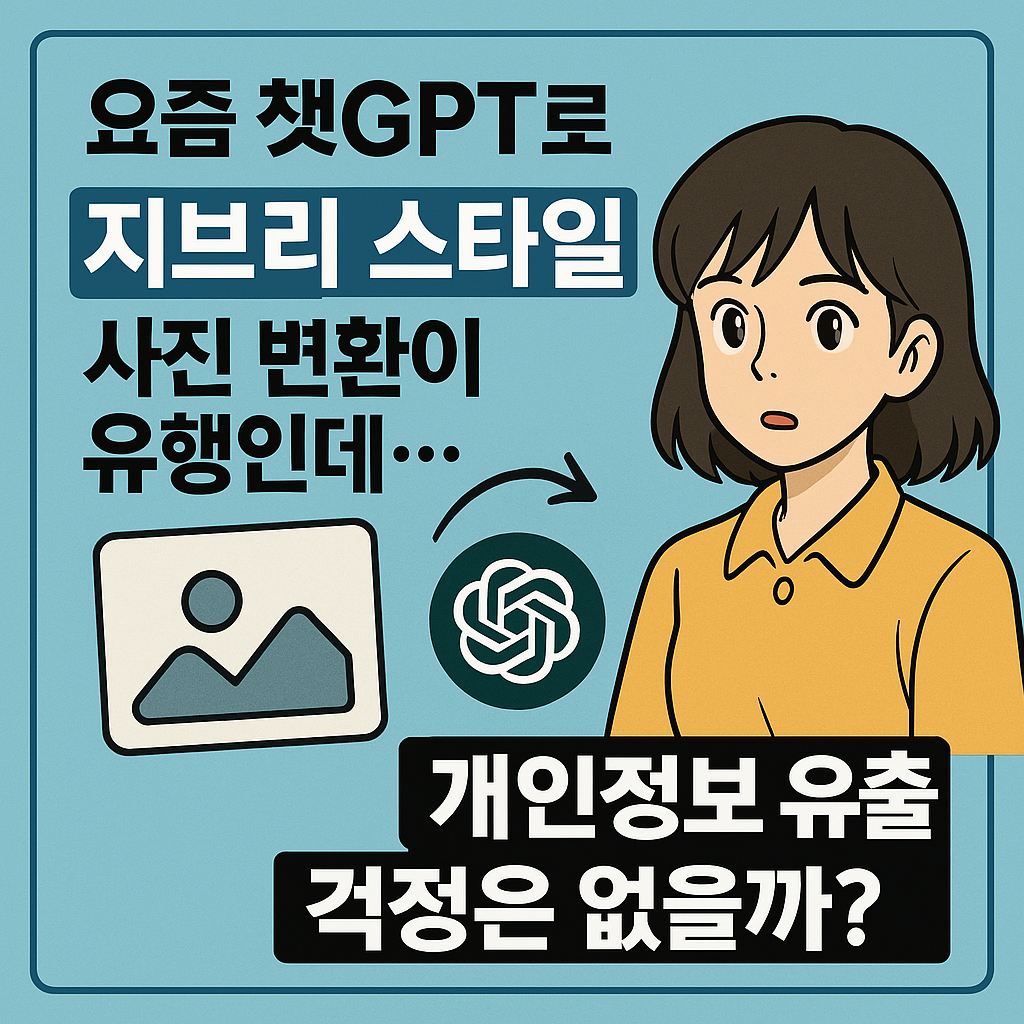 챗GPT 지브리 스타일 이미지 변환, 개인정보 유출 걱정 없는 이유 (2025년 4월 기준) 요즘 챗GPT로 지브리 스타일 사진 변환이 유행인데… 개인정보 유출 걱정은 없을까? (2025년 4월 기준)
